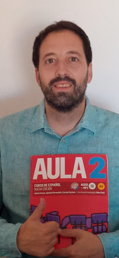 En todos los niveles usamos un manual de base, el libro de "Aula" y se complementa con otros materiales para reforzar los conocimientos aprendidos como canciones, juegos, vídeos, artículos de periódicos o revistas...